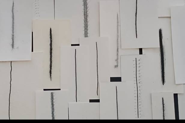 No eixo Professor Artista / Artista Professor, o público pode conferir “Camuflagem”, de Moacir Chotguis, uma instalação de parede em técnica mista sobre papel.
